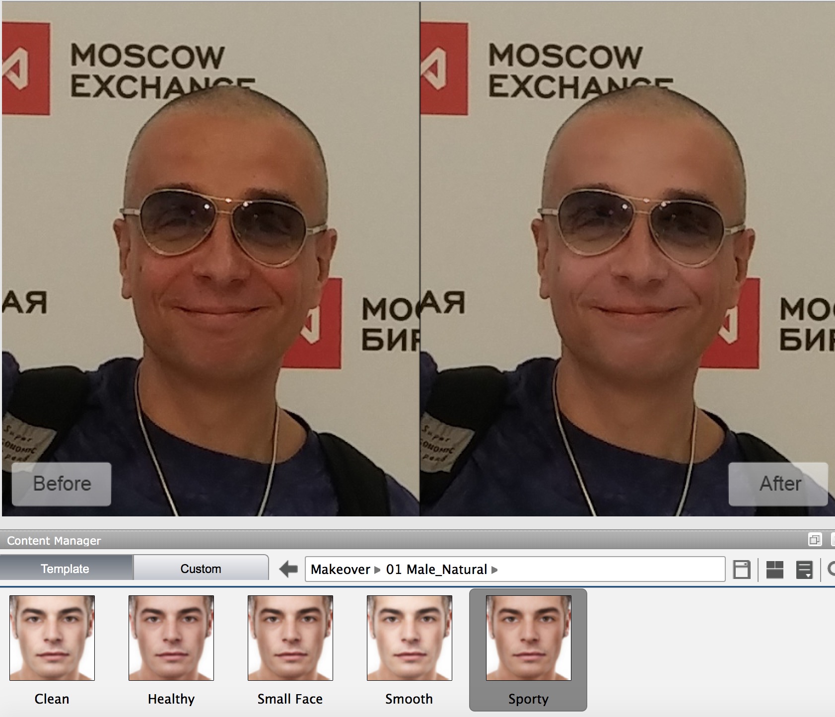 Сегодня дошли руки до третьей инкарнации продукта и я просто обалдел! Из карикатурной бесполезняшки FaceFilter-3 Pro превратился в мощнейший инструмент созидания псевдореальности. В качестве иллюстрации предлагаю три готовых шаблона “улучшения” меня: