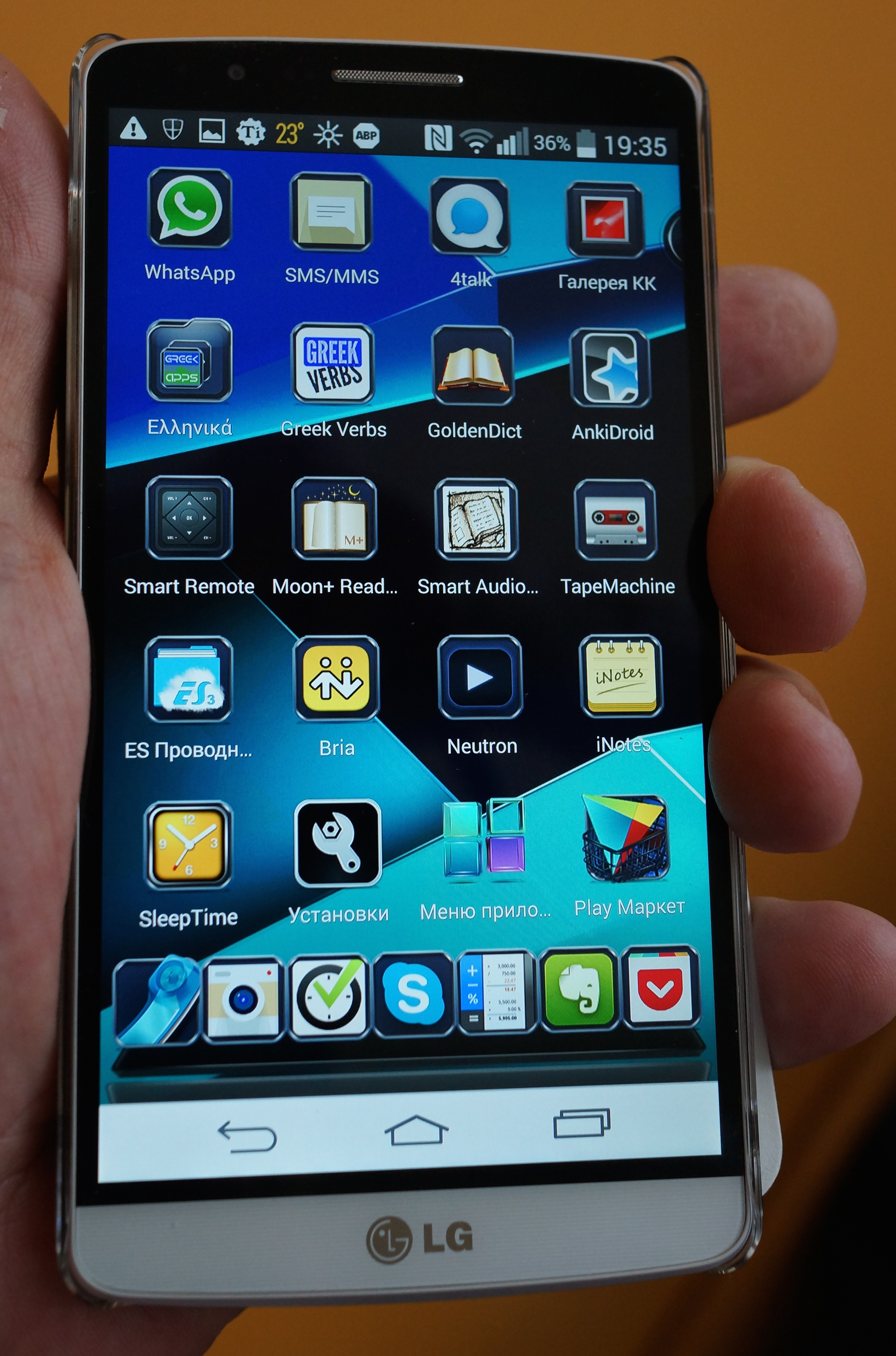 Затем, после любования, наступили тяжелые будни — борьба с жуткой гидрой и кривой сколопендрой по имени Андроид. Страшно сказать: на усмирение КиттиКэта (именно так, а не иначе!) ушло у меня 12 часов! Об этих страшных часах, о том, как я убивал и оживлял SD-карты, которые, как известно, Гуглятина оскопила в новой своей ОС (4.4.2), я расскажу завтра, равно как и поделюсь очень полезными советами о единственно правильной процедуре форматирования карты и алгоритмом рутирования G3, без которого пользование смартфоном лишено смысла (иначе, непонятно, зачем было уходить от айфона). Также завтра мы проведем сравнение — визуальное и функциональное — LG G3 с Samsung S4, а за одно поговорим о недостатках моей новой игрушки.