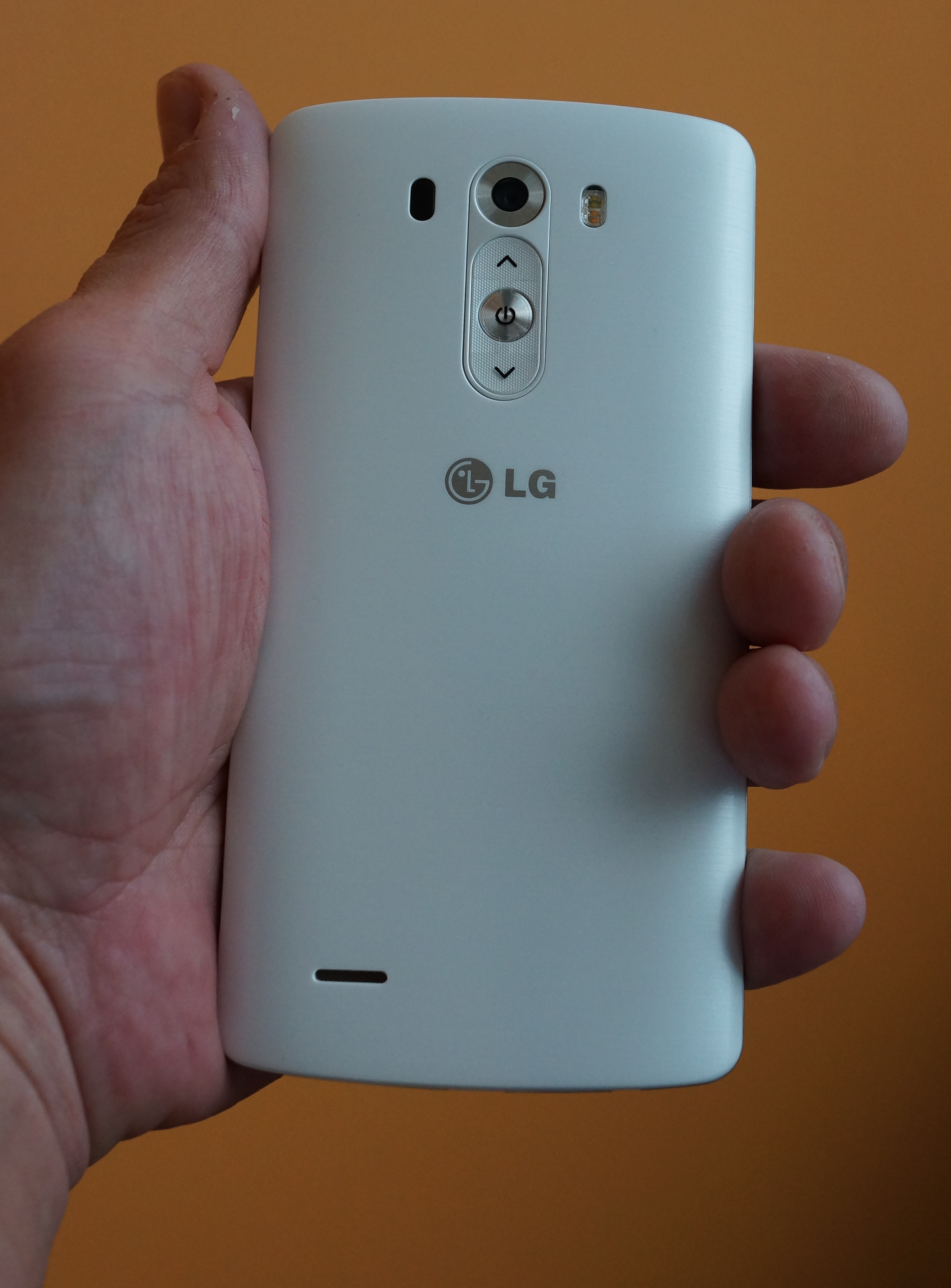 И — надо же! — обслужили. Когда в конце мая состоялась официальная презентация нового флагмана LG G3, публике не оставалось ничего кроме как развести руками: таки да, блудница достойна своего Вавилона! G3 наяву оказался точно таким же запредельным смартфоном как и в слухах и концептах: топовый Qualcomm MSM8975AC Snapdragon 801 с частотой 2500 MHz, 3 гигабайта памяти, 32 гигабайта флэша на борту, умопомрачительный экран 5 с половиной дюйма, который тактильно и визуально (из-за практического отсутствия бортиков) почти не отличается от 5-дюймовых смартфонов, оптическая стабилизация, сменная батарея на 3000 mAh, слот под карту на 128 гигов, оптическая стабилизация, а сверх всего — еще и феноменальное лазерное фокусирование, которое выводит по резкости мобильные гаджеты на качественно иной уровень.
