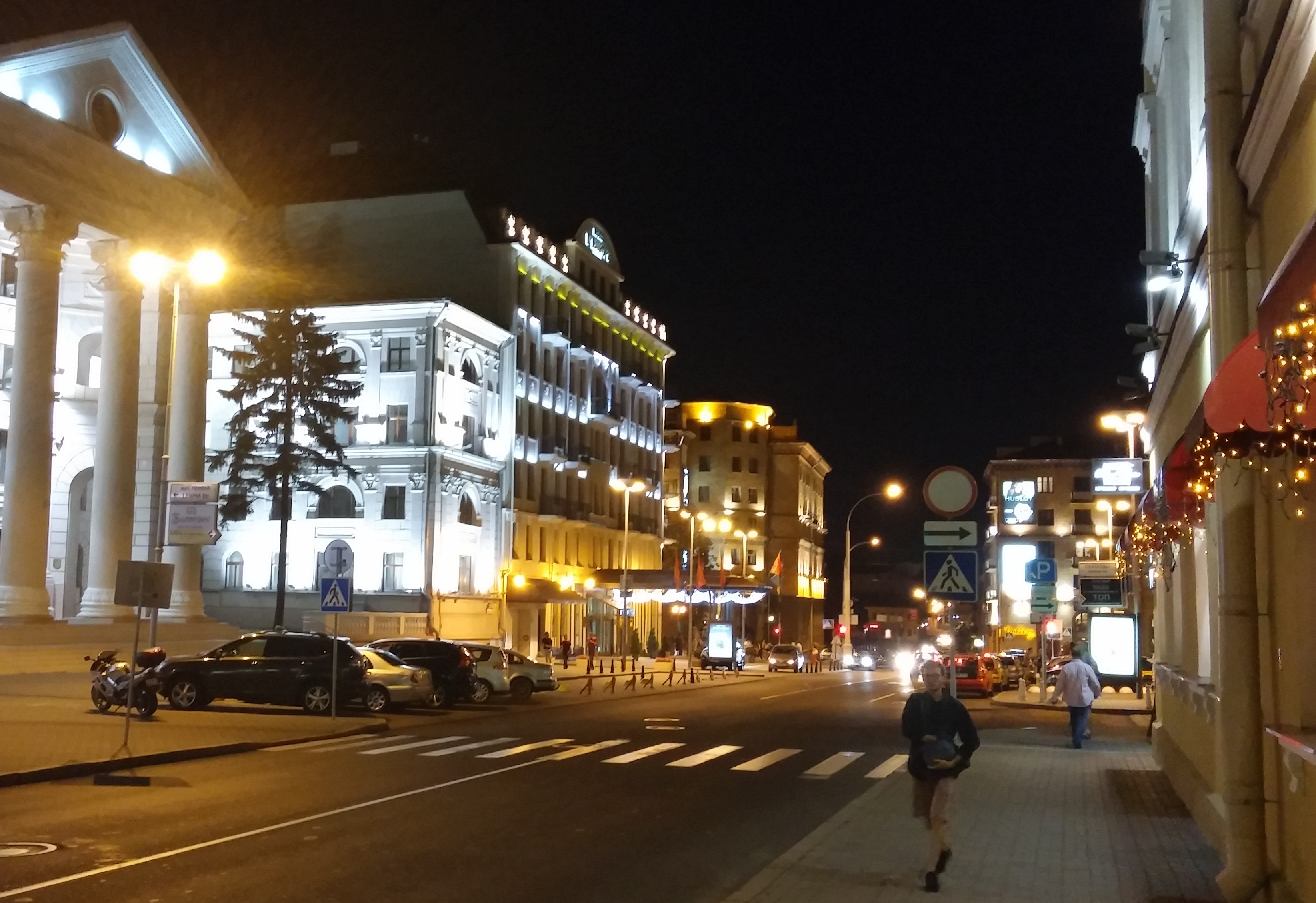Про нейтронную бомбу – это я, конечно, шучу, но ощущение какой-то вопиющей безлюдности городских пространств и в самом деле нешуточное! Минск – это город для 5 миллионов жителей, а не 1,8! В будни улицы пустынны, на дорогах полтора автомобиля. В выходной день – улицы пустынны, на дорогах полтора автомобиля. Совершенно невероятное ощущение. Поначалу – делается не по себе, но потом привыкаешь и… начинаешь наслаждаться! Пространствами, красотой парков, удобством езды по городским улицам и т.д. Поистине – вот он идеальный метрополис для жизни! Собственно, именно таким он и должен быть, а не безразмерной растянутой до полной деформации галошей, кою мы наблюдаем в Москве, Нью-Йорке, Мумбаи и прочих средостениях современного урбанизма.