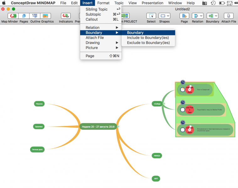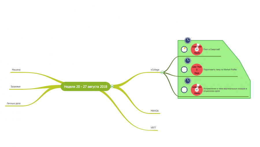 Mind Manager подходит, напротив, для предельно схематичных решений, когда визуальная компонента интеллект-карты вообще не важна и нужно сосредоточиться на самом плане и последовательности действий.