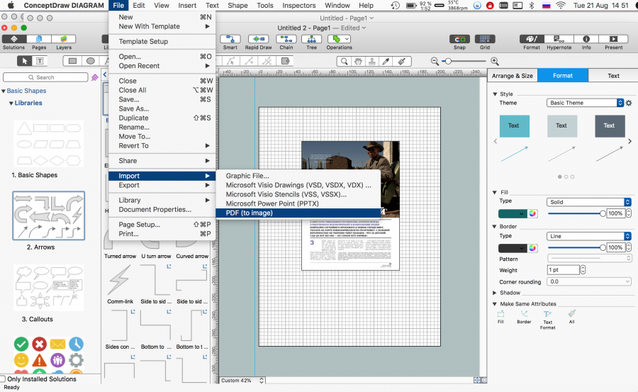 В DIAGRAM 12 появилась возможность импортировать PDF файл как картинку, причём многостраничные документы портируются в многостраничный же документ DIAGRAM в виде изображений высокого разрешения.
