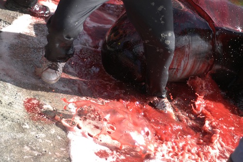 Почему? Потому что в фарерском избиении дельфинов нет ничего эксклюзивного. Разумеется, это не коррида – до испанской возвышенной изысканной метафоры противостояния Жизни и Смерти, Прославления Гибели на поле битвы и прочих иберийских романтизмов фарерским колхозникам плыть несколько столетий (и всё равно не доплыть: quod licet Jovi…). Достаточно вспомнить тёплые летние корейские вечера, оглашаемые лютым собачьим воем: это добропорядочные корейские крестьяне перемалывают своим четвероногим друзьям кости перед тем как забить на жаркое: так мясо, говорят, вкуснее получается. А можно вспомнить добрую латиноамериканскую современную традицию, когда все граждане города, объединенные от мала до велика общим сладострастным порывом, носятся по улицам, рыщут по подвалам и подворотням, отлавливая кошек, и вышибают им мозги о стены домов и мостовые. А чего? Это у них такой народный праздник. Народная забава.