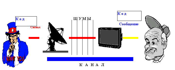 Для начала, опишем то, что называется в семиотике “коммуникационнойцепью”: “Коммуникационная цепь предполагает наличие Источника (Source), который через Передатчик (Transmitter) посылает Сигнал (Signal) по определенному Каналу (Channel). На другом конце Канала Сигнал через Приемник (Receiver) преобразуется в Сообщение (Message) для Адресата (Addressee). Поскольку Сигнал, путешествуя по Каналу, может встретить помехи в виде Шумов (Noise), Сообщение необходимо сделать избыточным (redundant) для того, чтобы добиться чистоты передачи. Есть и еще одно фундаментальное требование к коммуникационной цепи – это Код (Code), в равной мере понимаемый Источником и Адресатом. Код – это заранее обговоренная система вероятностей, которая позволяет заключить, что тот или иной элемент Сообщения принадлежит Источнику, а не является результатом воздействия Шумов”.