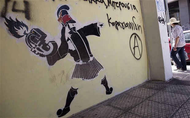 Даниэл Гросс совершенно не одинок в своем удивлении по части «греческой иррациональности»: такое же не понимание демонстрирует без исключения весь мейнстрим СМИ и политический истеблишмент Америки. Показательно, что по эту сторону океана в Европе существует абсолютно адекватная оценка реальности. Взгляните на это граффити, опубликованное британским Telegraph 23 мая: