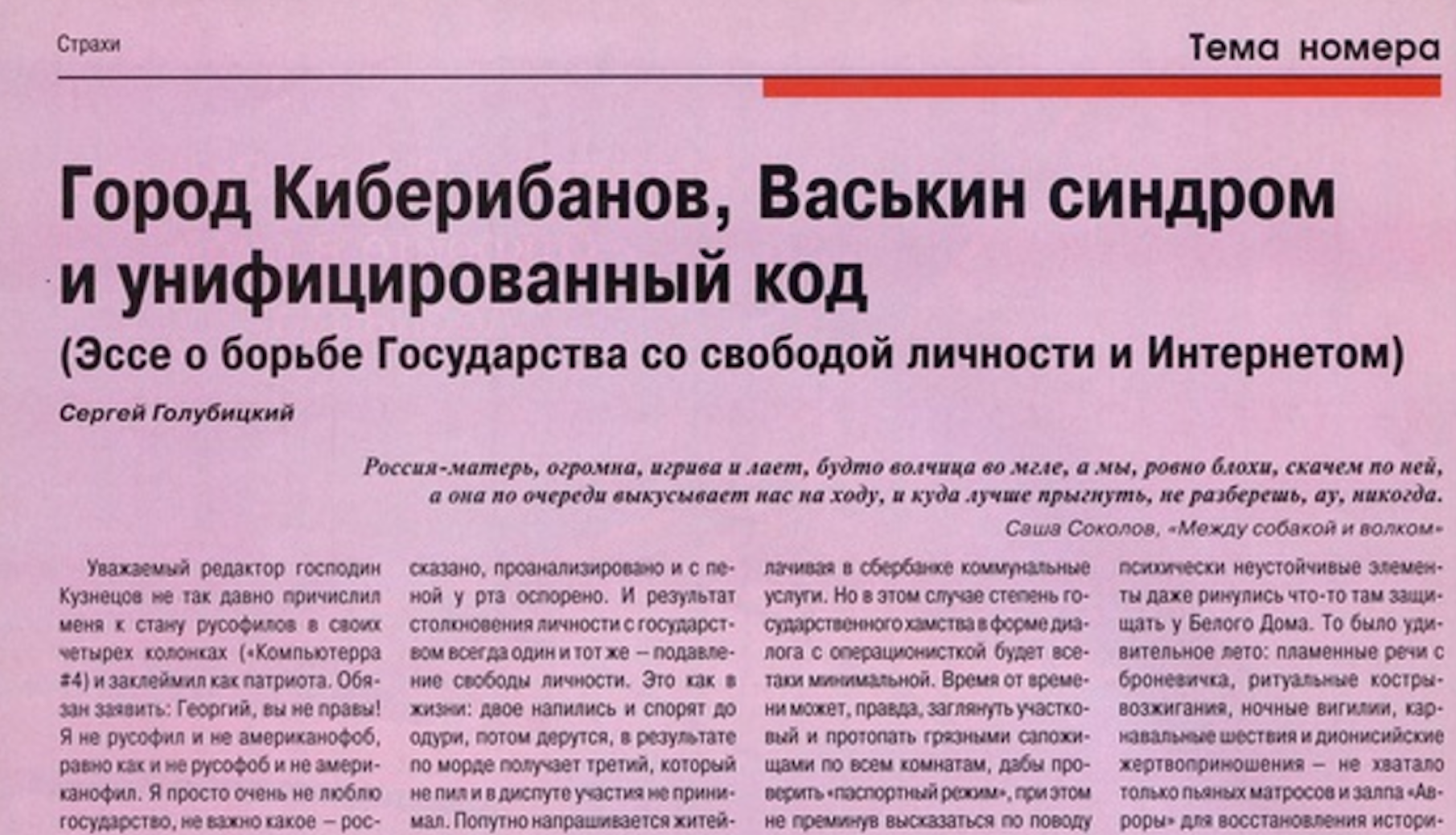 Читать далееЕсли не изменяет память, это вторая моя статья, опубликованная в “Компьютерре” в марте 1997 года. Перечитал случайно и аж дыхание