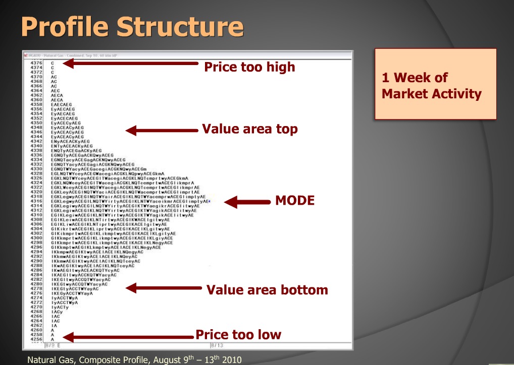 Перед нами недельный рыночный профиль фьючерса на природный газ (иллюстрация из материалов CME), который идеально воспроизводит «колокол Гаусса» (правда, повёрнутый на 90 градусов).