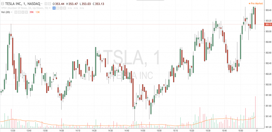 А теперь — чутка для сравнения. Торги по “Тесле” идут на объёме от 2 до 40 тысяч сделок в минуту по цене 350 долларов (20 тысяч рублей) за штуку!